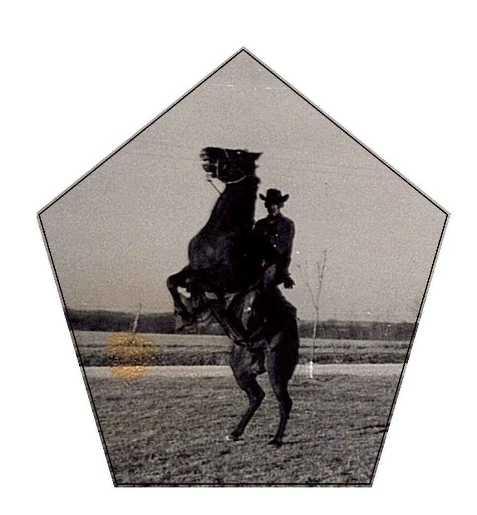 I was a farm kid. I hired out to do farm work, wrangling livestock, mowing, raking, planting, bailing, milking etc. My sophomore year of high school I started working for Haver Grover Veterinary Supply at their research farm in Stanley Kansas. I would ride my horse to work each day. It was 7 miles to work by roads and only 1 mile by horse. My horse loved it, when we got to work, he got a nice stall and pasture with fine hay and oats curtesy of Haver Grover. When we were moving stock “old Rusty” had to work. I was actually a Cowboy.